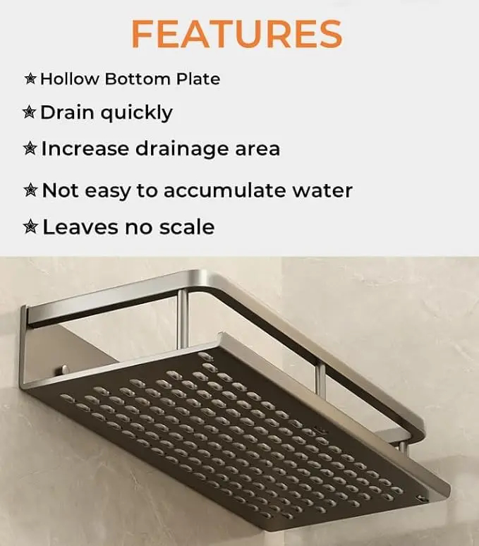- ใDURABLEใShower storage for inside shower is made of high-quality space aluminum, waterproof and rust-proof.With hollow and ventilated design,shower holder for wall is stable for storing large things.Bathroom shower organizer for inside shower is dry quickly and easy to wipe clean, keeping the bathroom essentials dry and clean on the shower caddies. Our bathroom shower shelves is an ideal choice for home.