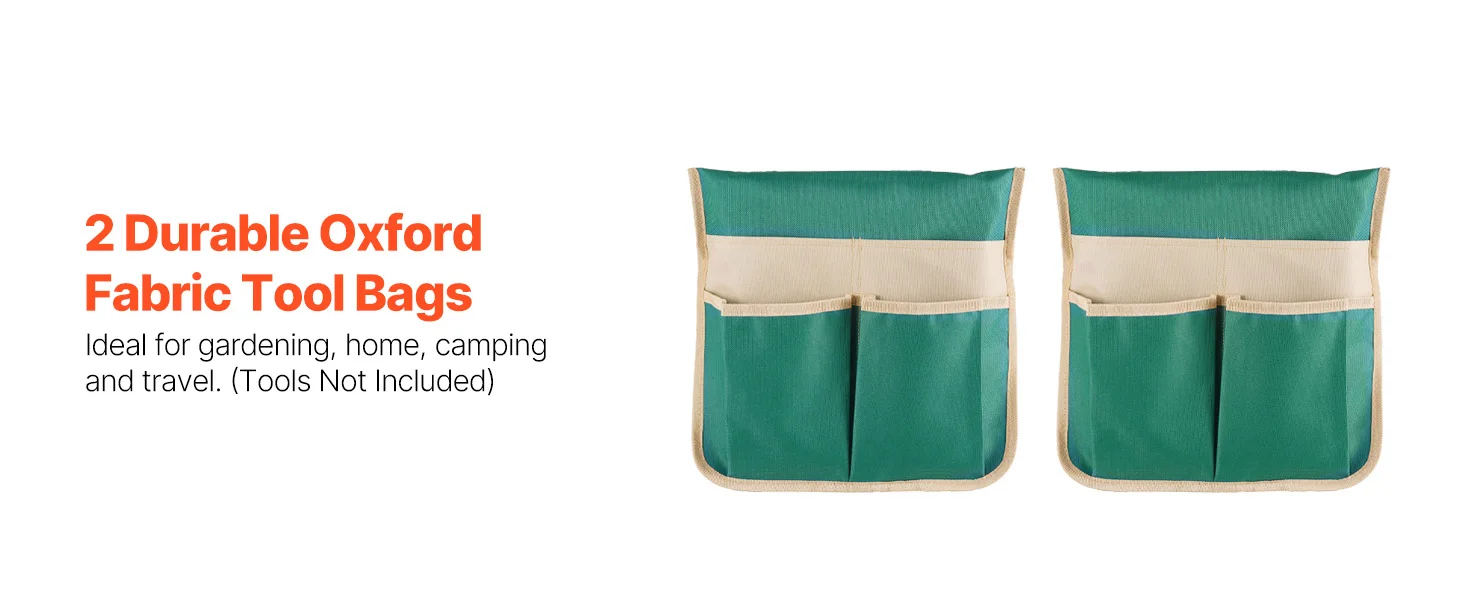 - Two Convenient Tool Pouches: This gardening bench is equipped with a pair of sturdy 600D Oxford fabric tool pouches, designed to store essential gardening items such as scissors, gloves, and small trowels. These pouches ensure your tools are always accessible, reducing the need to stand up frequently and helping you work more efficiently in the garden.