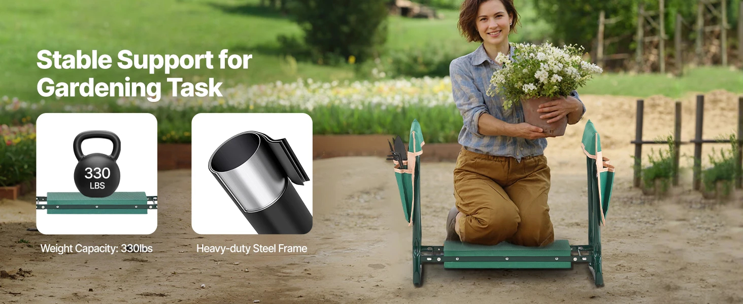 - Handles up to 330 lbs: Crafted from durable A3 steel with a protective powder-coated surface, this garden kneeling stool offers reliable stability and strength. It accommodates up to 330 lbs, making it suitable for gardening, home tasks, and other activities requiring sturdy support.