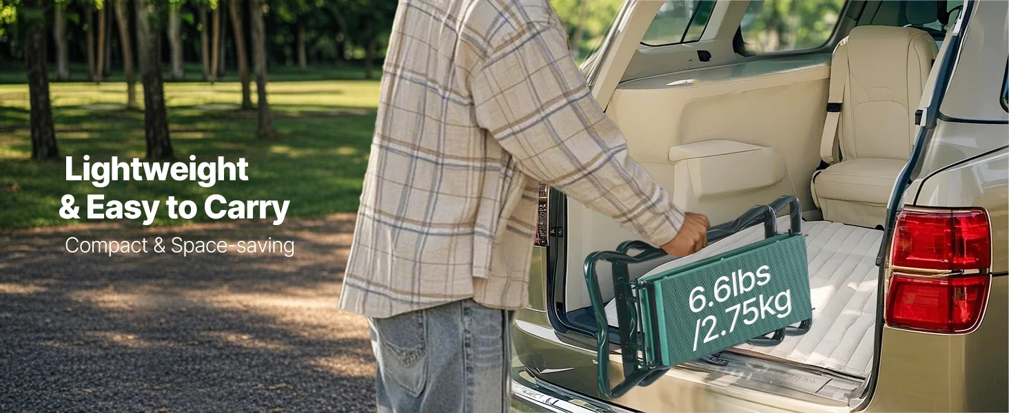 - Portable and Lightweight: At just 6.06 lbs (2.75 kg), this garden kneeling bench is designed for easy folding and storage. Its compact size allows it to fit conveniently in a car trunk or shed, making it a practical choice for gardening, outdoor camping, or picnics.