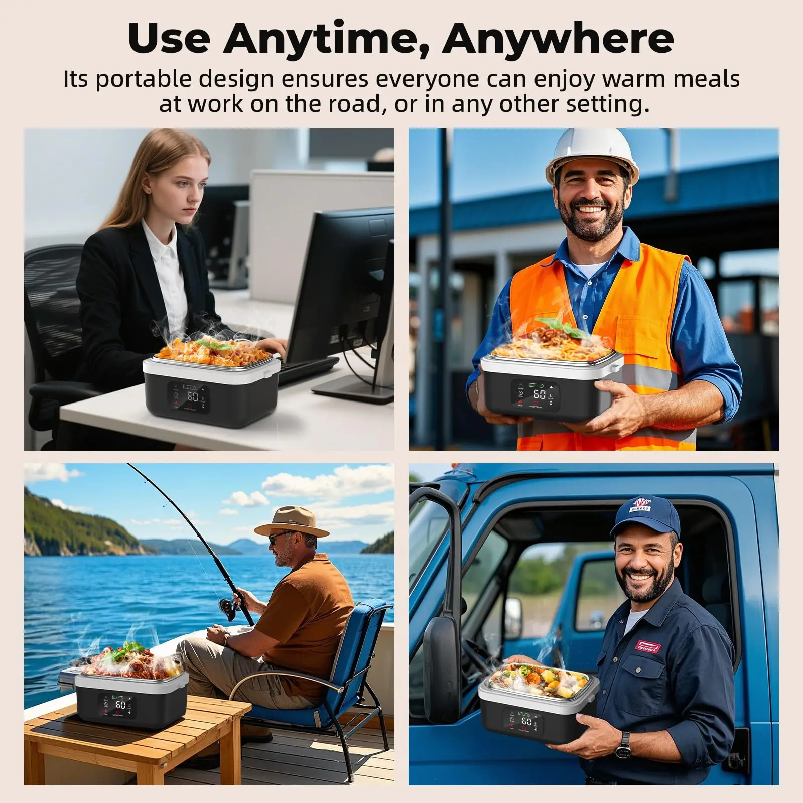 Wireless Heated 1L Lunch Box โ 8000mAh, 60W Food Warmer Stainless Steel Container