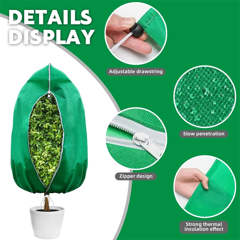 Winter Plant Covers 4-Pack 鈥 Nonwoven Freeze Protection Bags w Zipper + Drawstring for Outdoor Plants