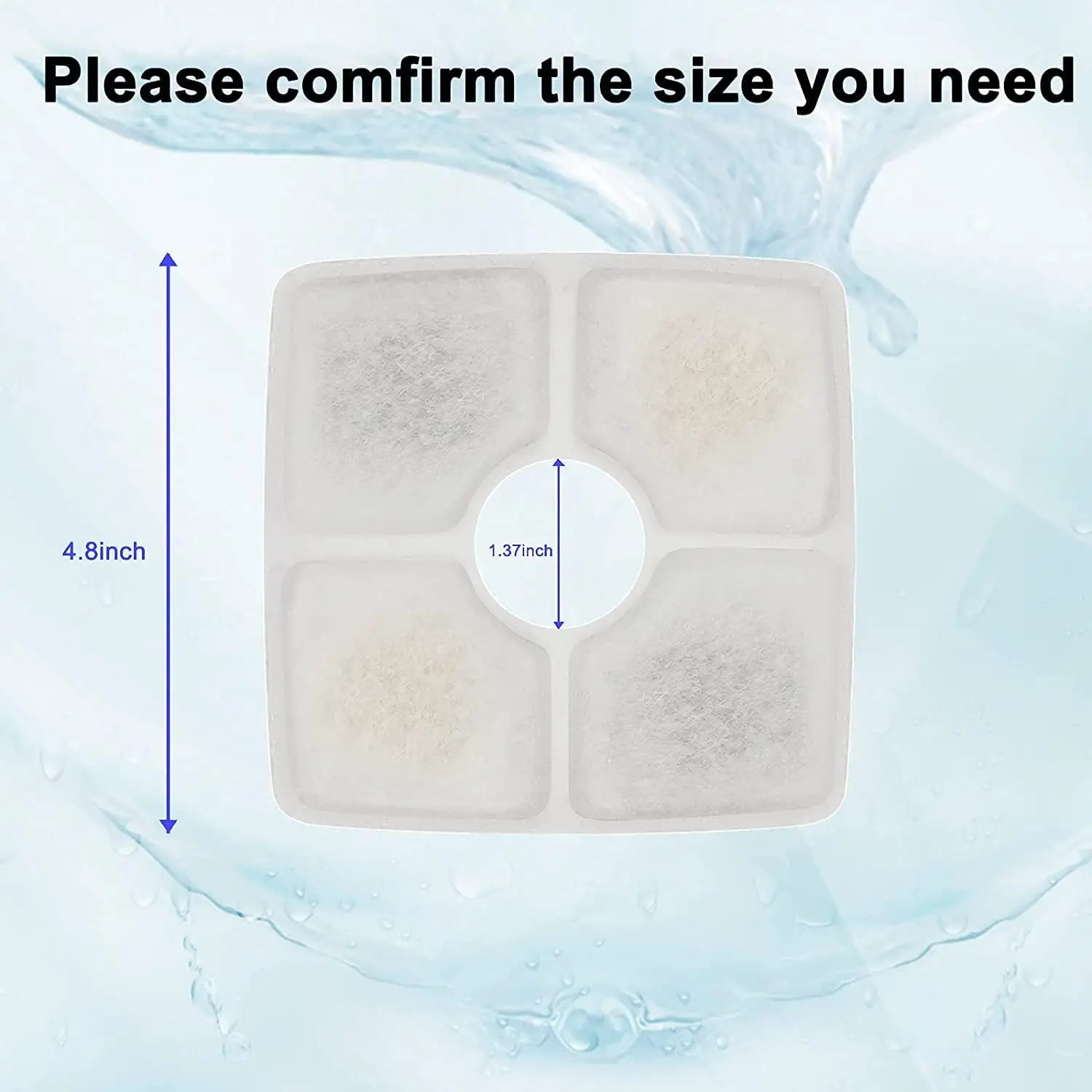 Square Pet Fountain Filters (4/8-Pack) 鈥 Compatible with Most Square Filtration Systems