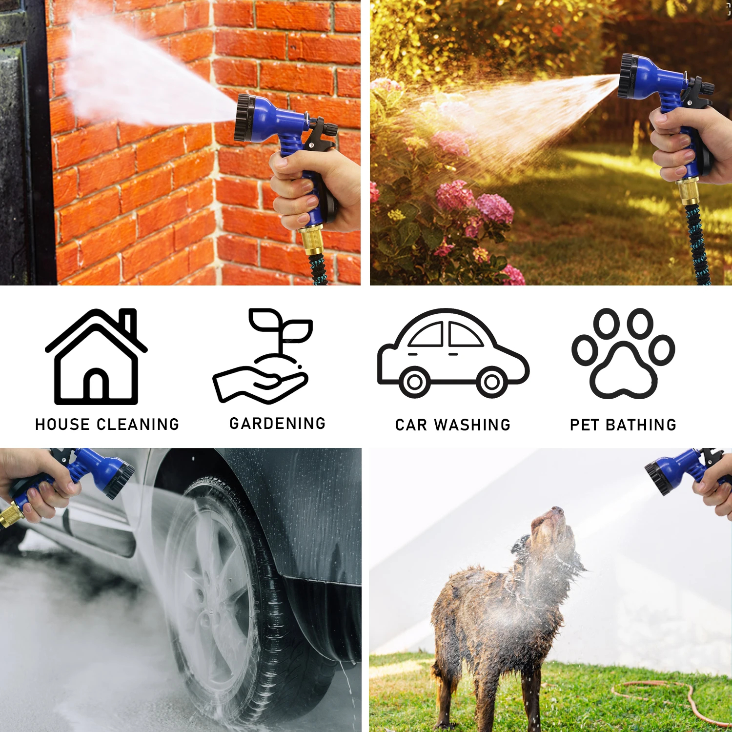 Expandable Garden Hose 50 ft (3/4") + 7-Function Spray Nozzle 鈥 Easy Outdoor Watering